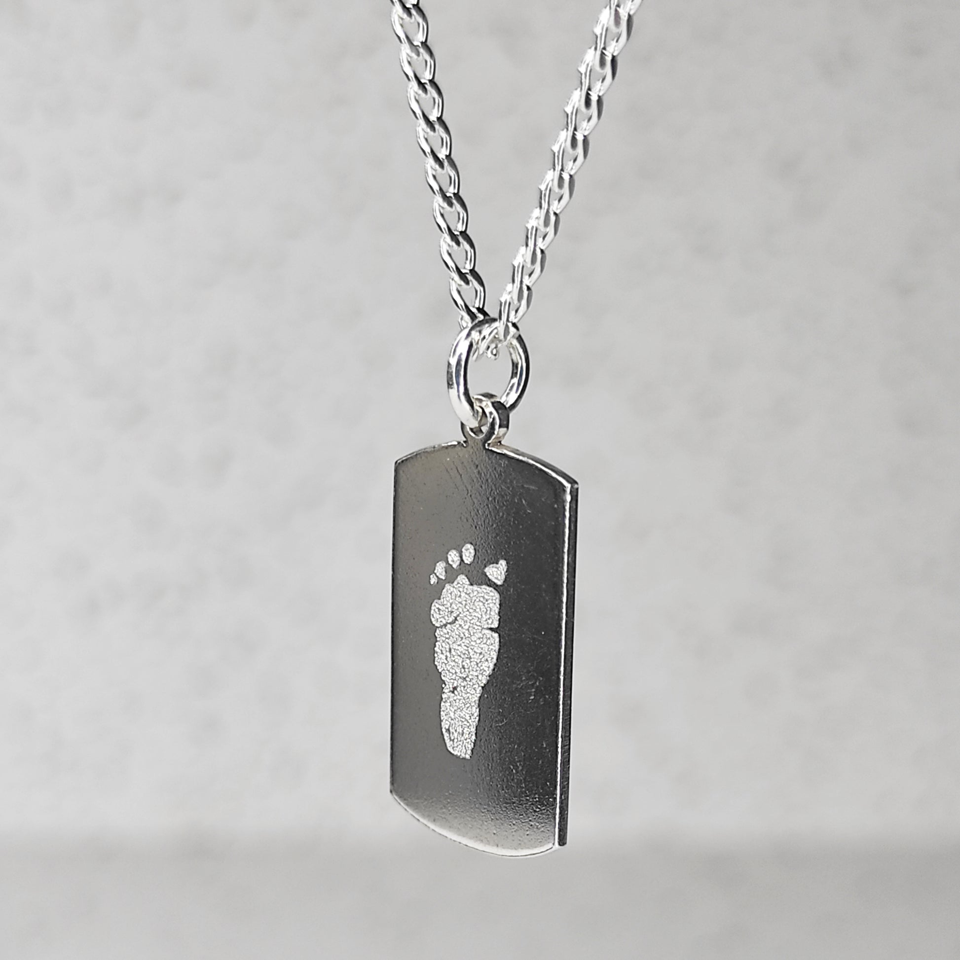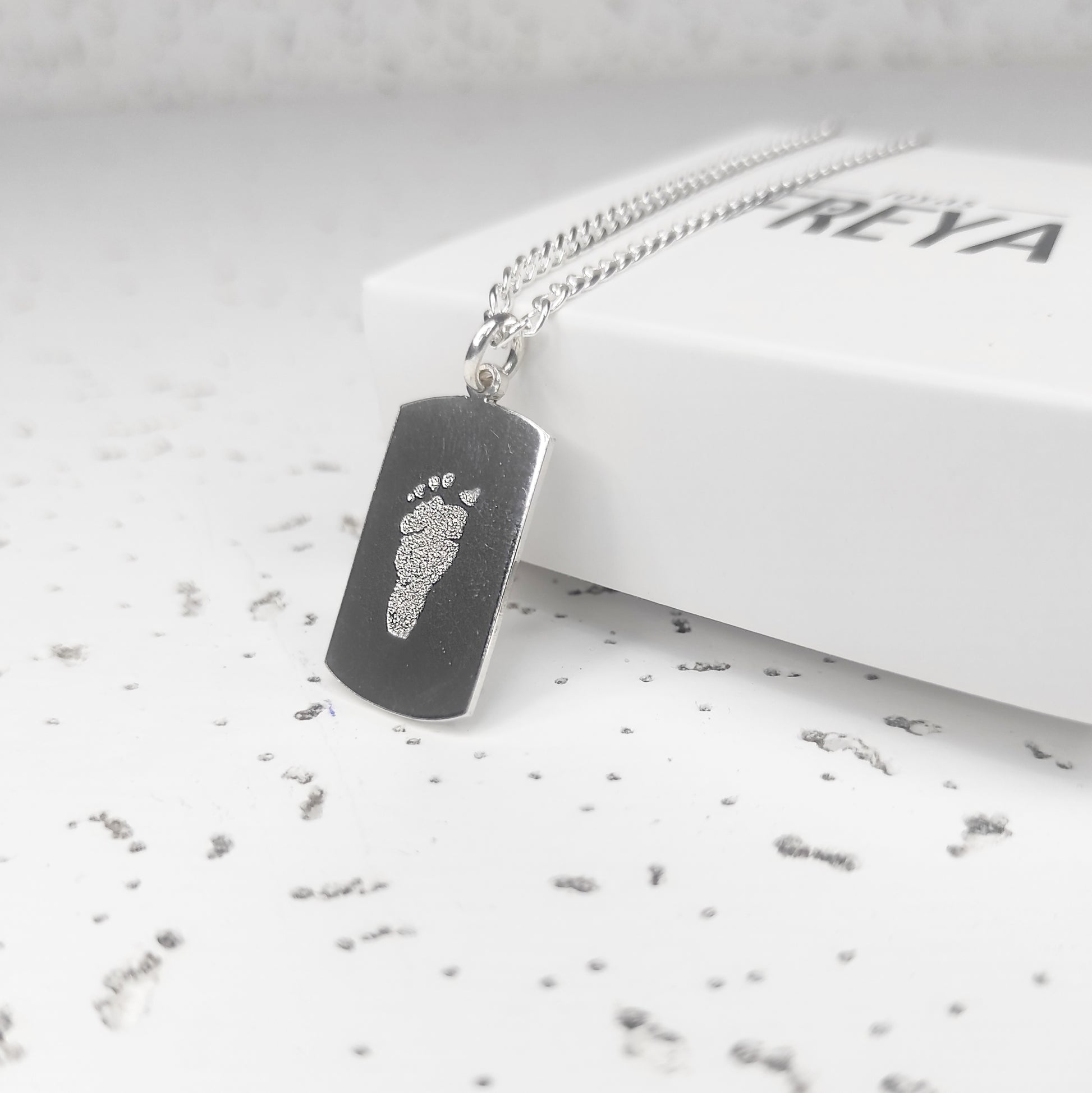 Nuestro collar de huella es ideal para capturar un recuerdo único, ya sea la huella de tu hij@ o la huella de tu pareja, herman@ o alguien realmente especial para ti. Es la versión favorita de los hombres.